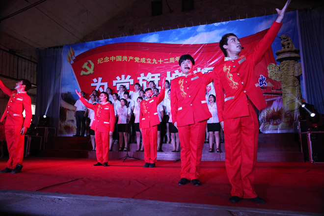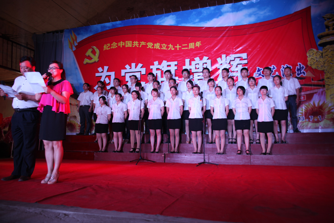 7月1日,為紀念中國共產黨成立92周年,回顧光輝歷程,唱響時代旋律,響應海安縣總工會號召,由升輝集團32名工作者組成大合唱團隊參與匯演。分別演唱了《中國脊梁》、《響當當的共產黨員》、《我和我的祖國》,謳歌了升輝人在黨旗下,不畏艱難,眾志成城,用勞動改天換地的壯志豪情。