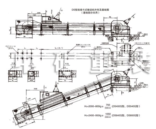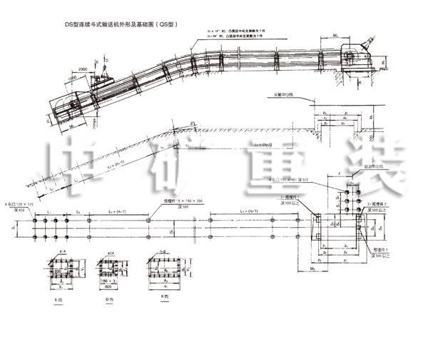 DS型連續(xù)式斗式輸送機(jī)外形及基礎(chǔ)圖(QS型)