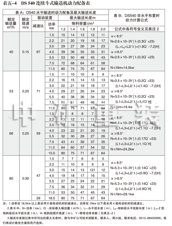 2、DS 540連續(xù)斗式輸送機(jī)動力配備表
