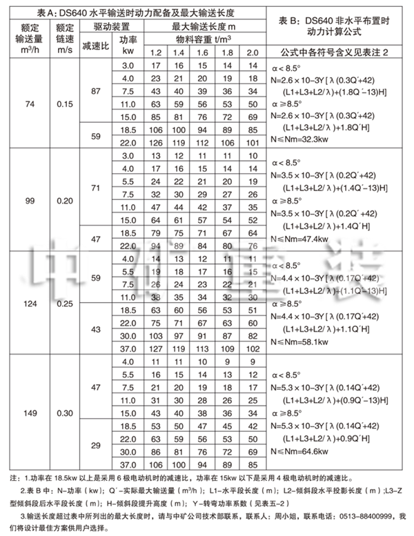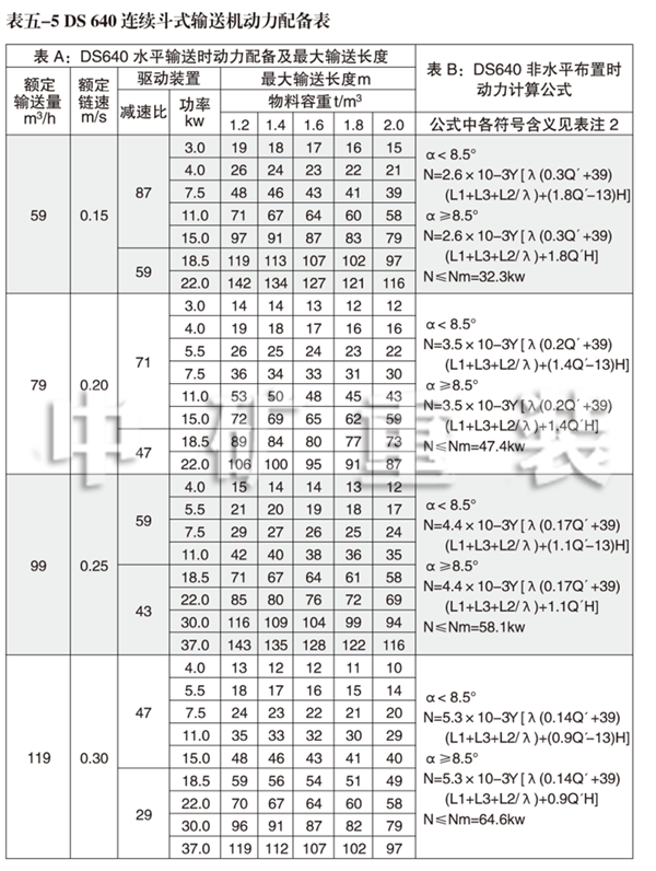 3、DS 640連續(xù)斗式輸送機(jī)動力配備表
