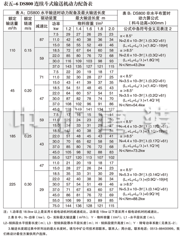 4、DS 800連續(xù)斗式輸送機(jī)動力配備表